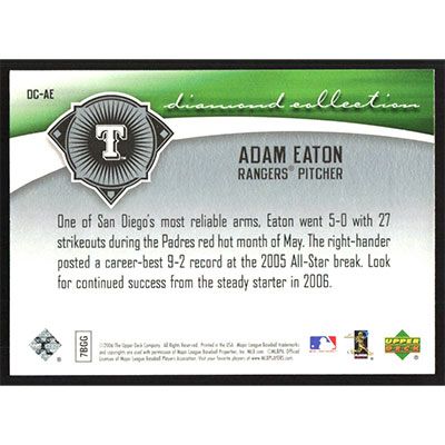 This is a 2006 Upper Deck Diamond Collection Adam Eaton baseball card. The card is #DC-AE and pictures show condition.