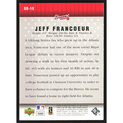 This is a 2006 Upper Deck Diamond Debut Jeff Francoeur baseball card. The card is #DD-19 and pictures show condition.