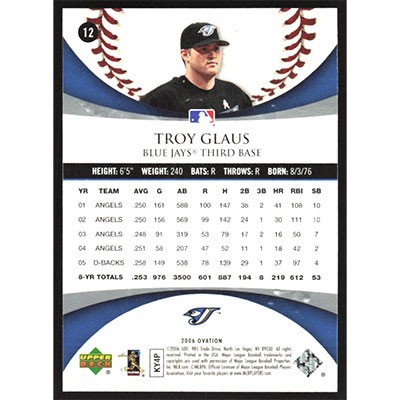 This is a 2006 Upper Deck Ovation Troy Glaus baseball card. The card is #12 and pictures show condition.