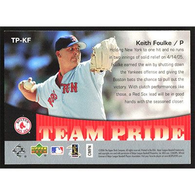 This is a 2006 Upper Deck Team Pride Keith Foulke baseball card. The card is #TP-KF and pictures show condition.