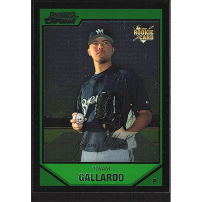This is a 2007 Bowman Chrome Draft Yovani Gallardo baseball card. The card is #BDP53 and pictures show condition. Team(s): Milwaukee Brewers Rookie Card (RC)