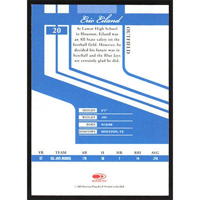 This is a 2007 Donruss Elite Extra Edition Eric Eiland baseball card. The card is #20 and pictures show condition.