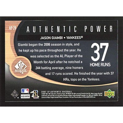 This is a 2007 SP Authentic Authentic Power Jason Giambi baseball card. The card is #AP-24 and pictures show condition.