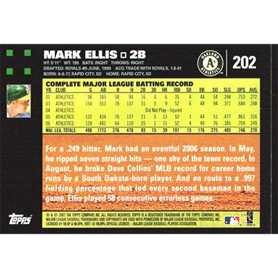 This is a 2007 Topps Mark Ellis baseball card. The card is #202 and pictures show condition.