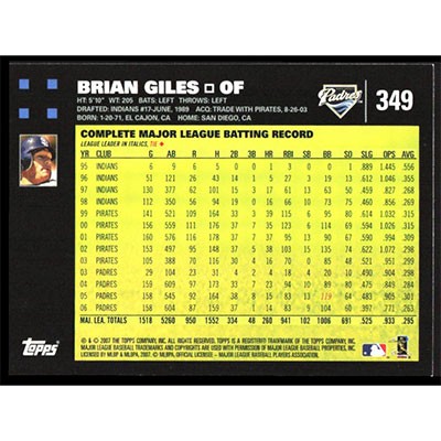 This is a 2007 Topps Brian Giles baseball card. The card is #349 and pictures show condition.