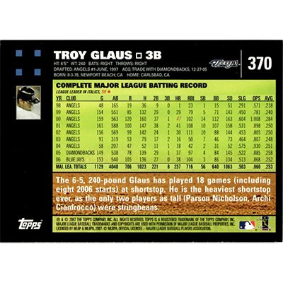 This is a 2007 Topps Troy Glaus baseball card. The card is #370 and pictures show condition.