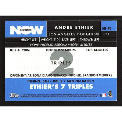 This is a 2007 Topps Generation Now Andre Ethier baseball card. The card is #GN196 and pictures show condition.