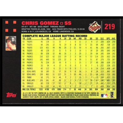 This is a 2007 Topps Red Backs Chris Gomez baseball card. The card is #219 and pictures show condition.