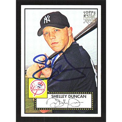 This is a 2007 Topps Rookie '52 Shelley Duncan autographed baseball card. This card has been signed, in blue, by Shelley Duncan, and is guaranteed authentic by Ballcardz.com. The card is #182 and pictures show condition.