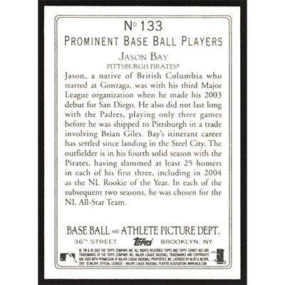 This is a 2007 Topps Turkey Red Jason Bay baseball card. The card is #133 and pictures show condition.