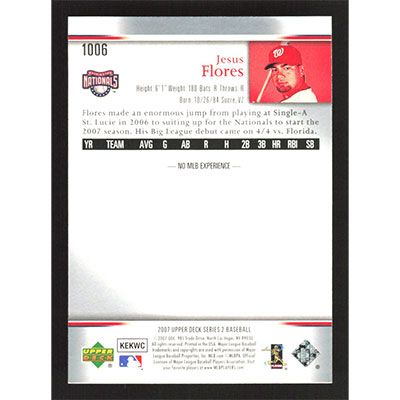 This is a 2007 Upper Deck Jesus Flores baseball card. The card is #1006 and pictures show condition.