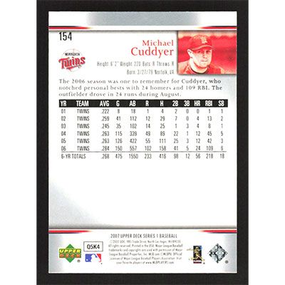 This is a 2007 Upper Deck Michael Cuddyer baseball card. The card is #154 and pictures show condition.
