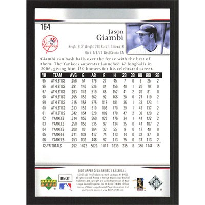 This is a 2007 Upper Deck Jason Giambi baseball card. The card is #164 and pictures show condition.