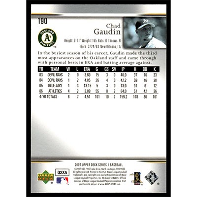 This is a 2007 Upper Deck Chad Gaudin baseball card. The card is #190 and pictures show condition.