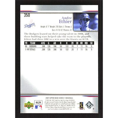 This is a 2007 Upper Deck Andre Ethier baseball card. The card is #350 and pictures show condition.