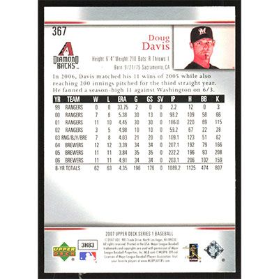 This is a 2007 Upper Deck Doug Davis baseball card. The card is #367 and pictures show condition.