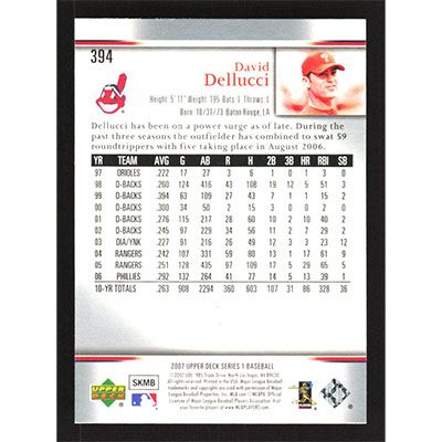 This is a 2007 Upper Deck David Dellucci baseball card. The card is #394 and pictures show condition.