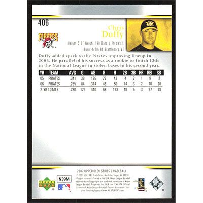 This is a 2007 Upper Deck Chris Duffy baseball card. The card is #406 and pictures show condition.