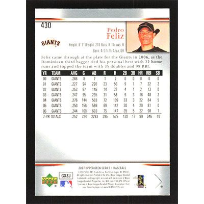 This is a 2007 Upper Deck Pedro Feliz baseball card. The card is #430 and pictures show condition.