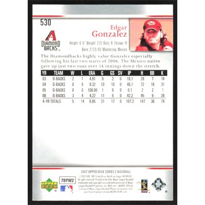 This is a 2007 Upper Deck Edgar Gonzalez baseball card. The card is #530 and pictures show condition.