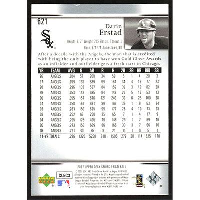 This is a 2007 Upper Deck Darin Erstad baseball card. The card is #621 and pictures show condition.
