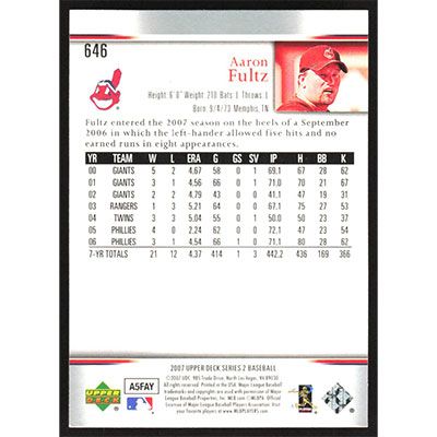 This is a 2007 Upper Deck Aaron Fultz baseball card. The card is #646 and pictures show condition.