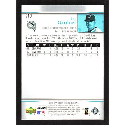 This is a 2007 Upper Deck Lee Gardner baseball card. The card is #710 and pictures show condition.
