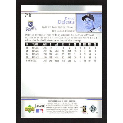 This is a 2007 Upper Deck David DeJesus baseball card. The card is #748 and pictures show condition.