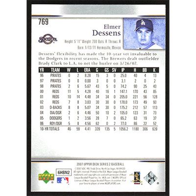 This is a 2007 Upper Deck Elmer Dessens baseball card. The card is #769 and pictures show condition.