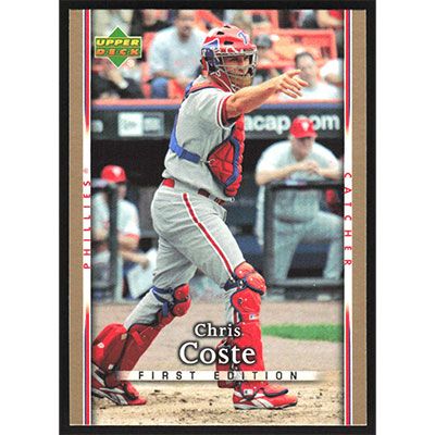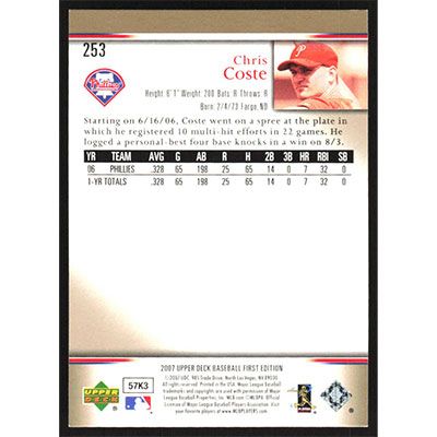 This is a 2007 Upper Deck First Edition Chris Coste baseball card. The card is #253 and pictures show condition.