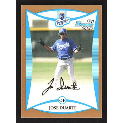 This is a 2008 Bowman Prospects Gold Jose Duarte baseball card. The card is #BP40 and pictures show condition.