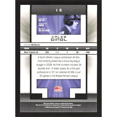 This is a 2008 Donruss Elite Extra Edition Caleb Gindl baseball card. The card is #15 and pictures show condition.