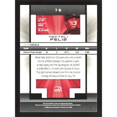 This is a 2008 Donruss Elite Extra Edition Neftali Feliz baseball card. The card is #76 and pictures show condition.