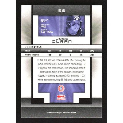 This is a 2008 Elite Extra Edition Jose Duran baseball card. The card is #56 and pictures show condition.