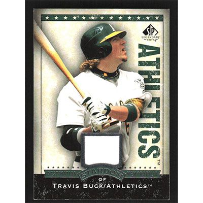 This is a 2008 SP Legendary Cuts Destination Stardom Memorabilia Travis Buck Jersey baseball card. The card is #DS-TB and pictures show condition. Team(s): Oakland Athletics
