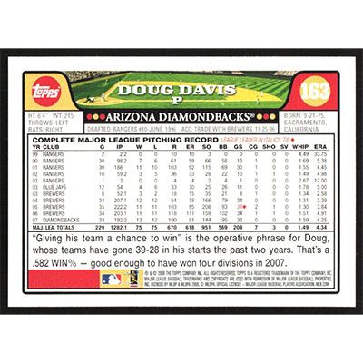 This is a 2008 Topps Doug Davis baseball card. The card is #163 and pictures show condition.
