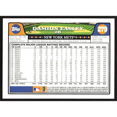 This is a 2008 Topps Damion Easley baseball card. The card is #279 and pictures show condition.