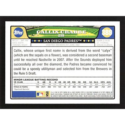 This is a 2008 Topps Callix Crabbe baseball card. The card is #389 and pictures show condition.