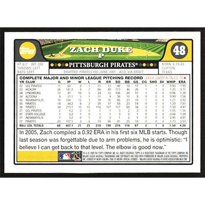 This is a 2008 Topps Zach Duke baseball card. The card is #48 and pictures show condition.