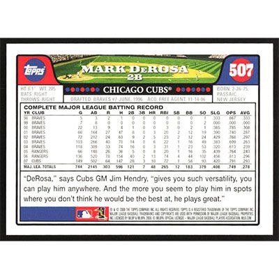 This is a 2008 Topps Mark DeRosa baseball card. The card is #507 and pictures show condition.