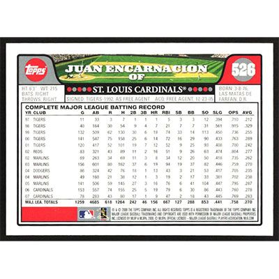 This is a 2008 Topps Juan Encarnacion baseball card. The card is #526 and pictures show condition.