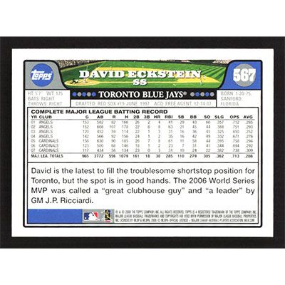 This is a 2008 Topps David Eckstein baseball card. The card is #567 and pictures show condition.
