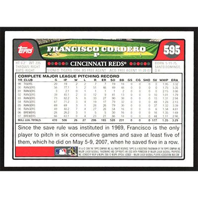 This is a 2008 Topps Francisco Cordero baseball card. The card is #595 and pictures show condition.