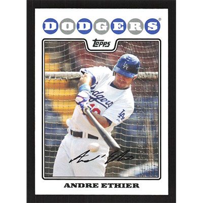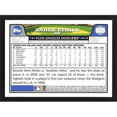 This is a 2008 Topps Andre Ethier baseball card. The card is #605 and pictures show condition.
