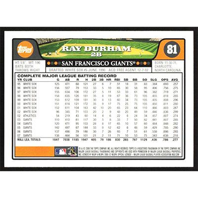 This is a 2008 Topps Ray Durham baseball card. The card is #81 and pictures show condition.
