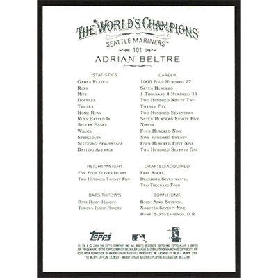 This is a 2008 Topps Allen & Ginter Adrian Beltre baseball card. The card is #101 and pictures show condition.