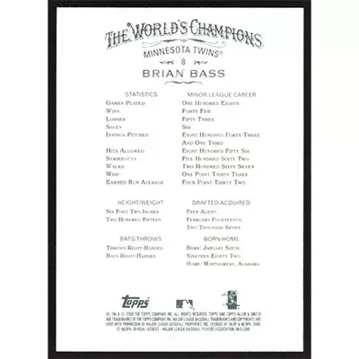 This is a 2008 Topps Allen & Ginter Brian Bass baseball card. The card is #8 and pictures show condition.