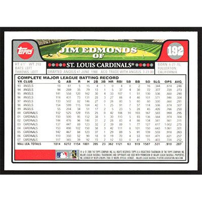 This is a 2008 Topps Gold Foil Jim Edmonds baseball card. The card is #192 and pictures show condition.