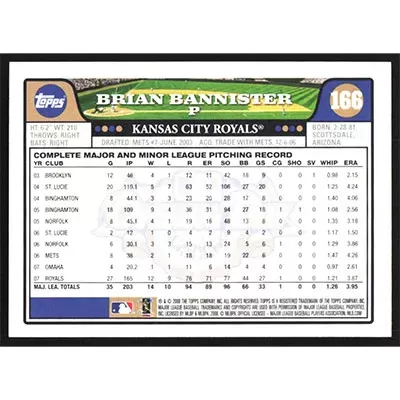 This is a 2008 Topps Opening Day Brian Bannister baseball card. The card is #166 and pictures show condition.