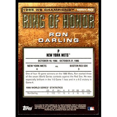 This is a 2008 Topps Update Ring of Honor Ron Darling baseball card. The card is #MRH-RD and pictures show condition.